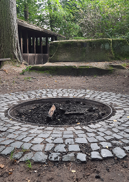 Dies ist unser zweiter ‚Wald-Camp-Platz‘, umgeben von massiven, uralten Felsformationen, die sich aus dem ansonsten relativ flachen Umland schützend erheben. Eine eingefasste Feuerstelle mit einfacher Ausstattung, umgeben von weitläufigem Wald und Wiesen mit seiner vielfältigen Tier- und Pflanzenwelt. Auch hier leuchten Hunderte von Glühwürmchen in den lauen Sommernächten und verzaubern diesen alten Ort. Übernachtet werden kann im eigenen mitgebrachten Zelt oder im Camper. Für das Winter-Modul oder Notfälle kann ggf. ein Seminarhaus in der Nähe hinzugezogen werden. Wir freuen uns auf gemeinsame Erlebnisse und Geschichten, die wir an diesen besonderen Ort mit euch entdecken dürfen.